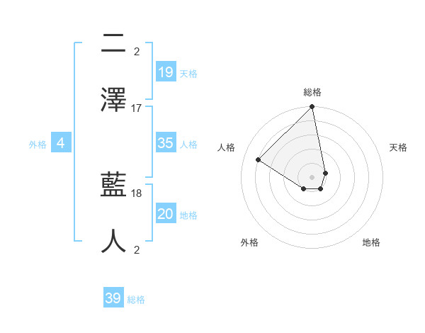 二澤 藍人さんを姓名の画数から五運を鑑定