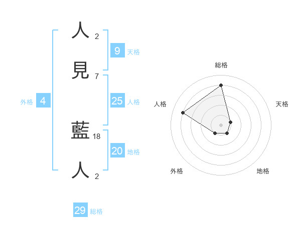 人見 藍人さんの総格は29画の4点!
