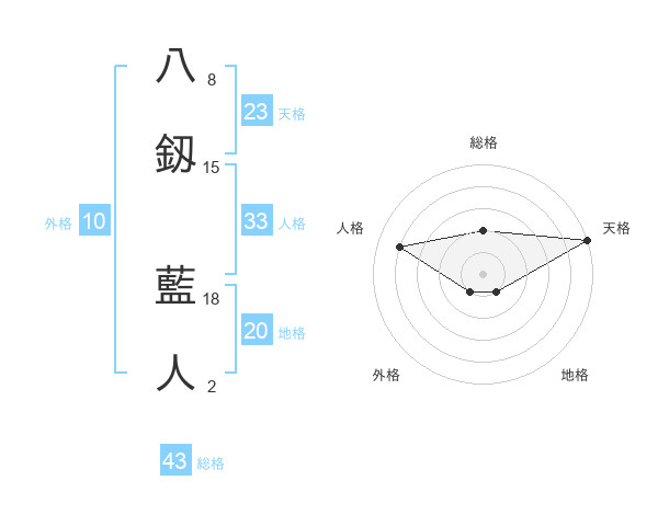 八釼 藍人さんの天格は23画の5点!