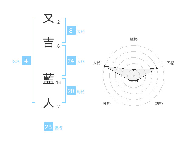 又吉 藍人さんの総格は28画の1点!