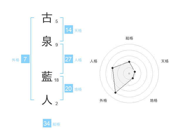 古泉 藍人さんの総格は34画の2点!
