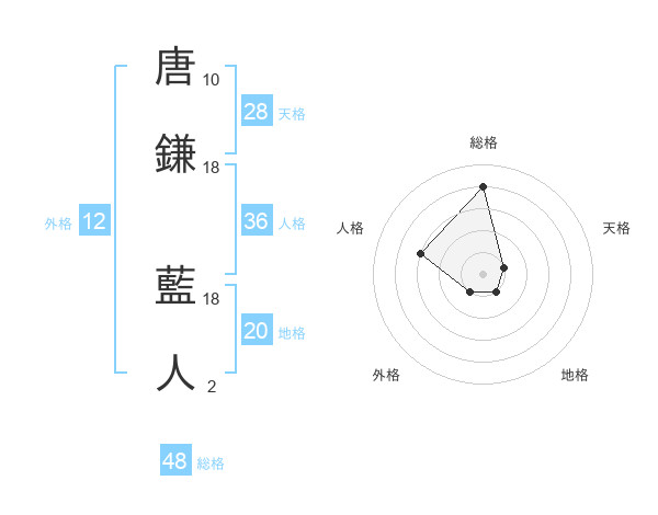 唐鎌 藍人さんの総格は48画の4点!