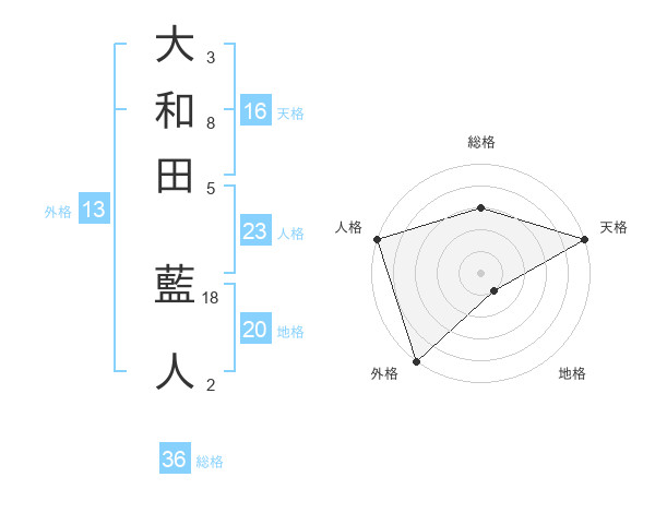 大和田 藍人さんを姓名の画数から五運を鑑定