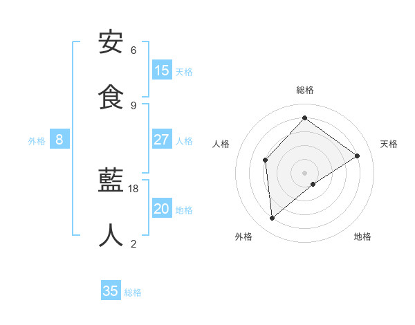 安食 藍人さんの総格は35画の4点!