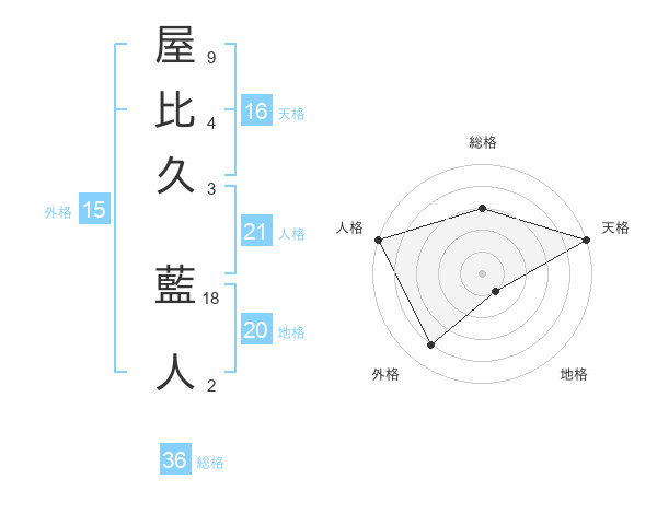 屋比久 藍人さんの天格は16画の5点!