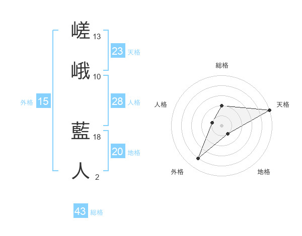 嵯峨 藍人さんの天格は23画の5点!