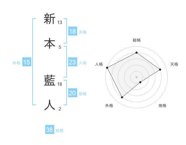 新本 藍人さんの総格は38画の4点!