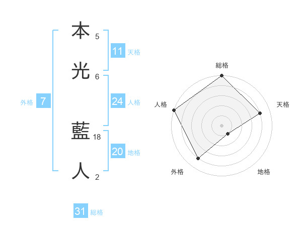 本光 藍人さんの総格は31画の5点!