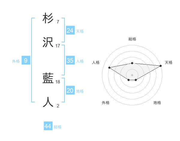 杉沢 藍人さんの総格は44画の2点!