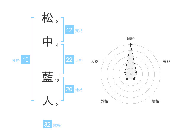 松中 藍人さんの総格は32画の5点!