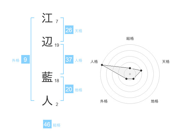 江辺 藍人さんの総格は46画の1点!