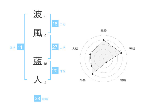 波風 藍人さんの総格は38画の4点!