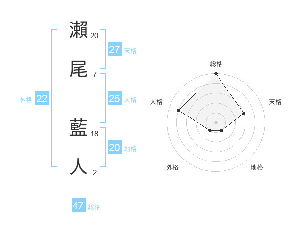 瀨尾 藍人さんの総格は47画の5点!