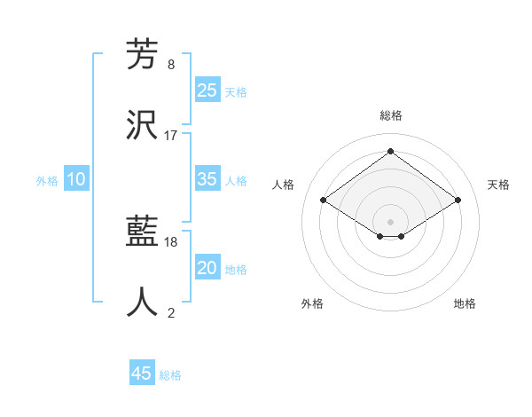 芳沢 藍人さんの総格は45画の4点!
