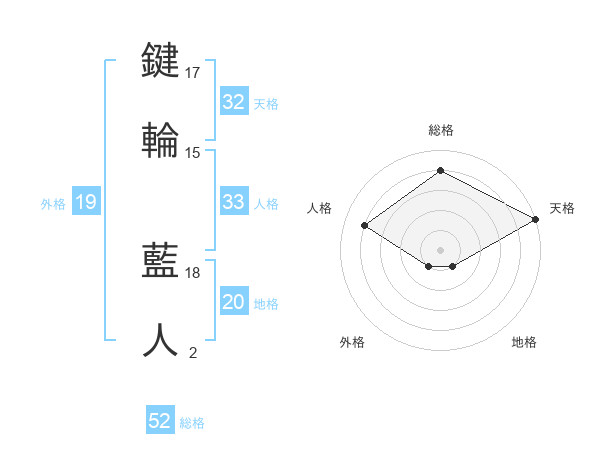 鍵輪 藍人さんの地格は20画の1点!