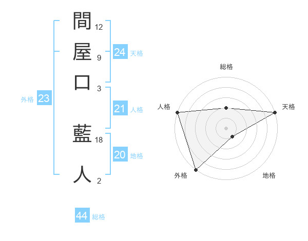 間屋口 藍人さんの天格は24画の5点!