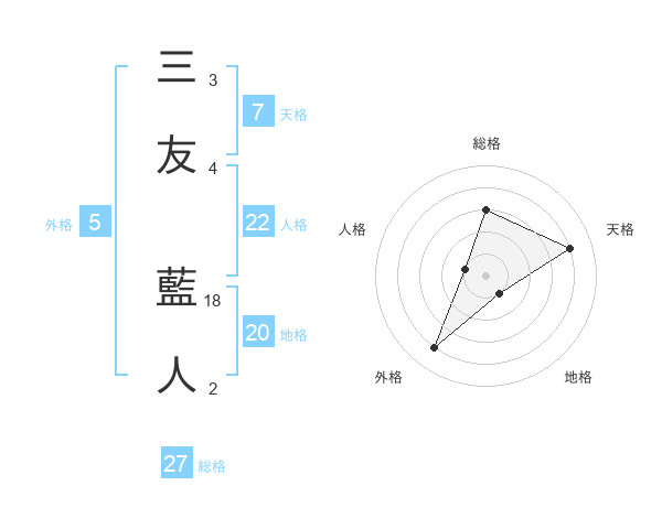 三友 藍人さんの総格は27画の3点!
