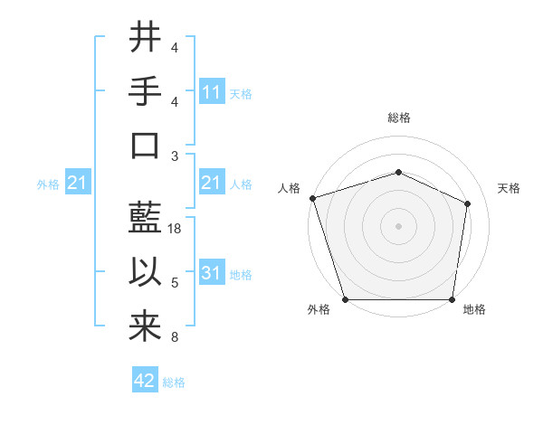 井手口 藍以来さんの人格は21画の5点!