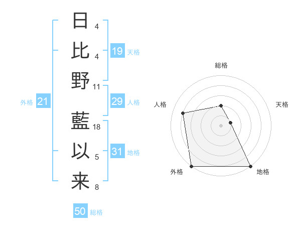 日比野 藍以来さんを姓名の画数から五運を鑑定