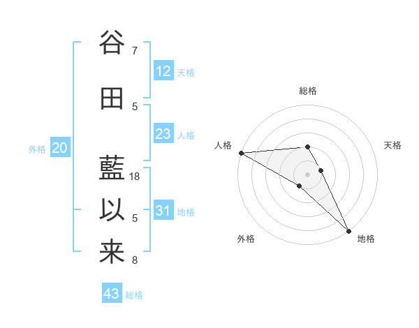 谷田 藍以来さんを姓名の画数から五運を鑑定