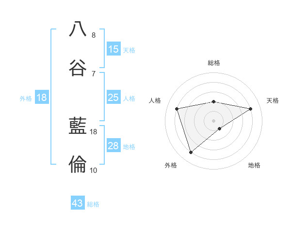 八谷 藍倫さんの天格は15画の4点!