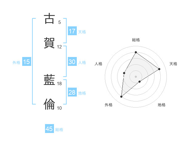 古賀 藍倫さんの総格は45画の4点!