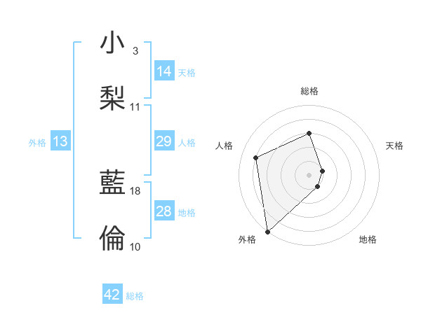 小梨 藍倫さんの外格は13画の5点!