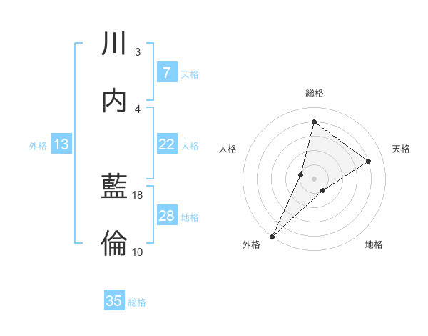 川内 藍倫さんを姓名の画数から五運を鑑定