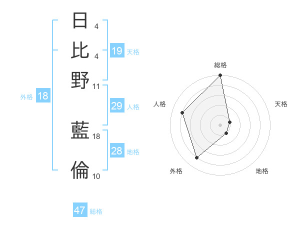 日比野 藍倫さんの総格は47画の5点!