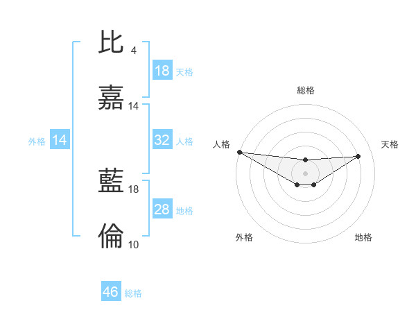 比嘉 藍倫さんの天格は18画の4点!