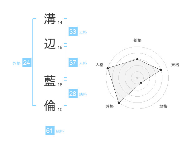 溝辺 藍倫さんの総格は61画の3点!