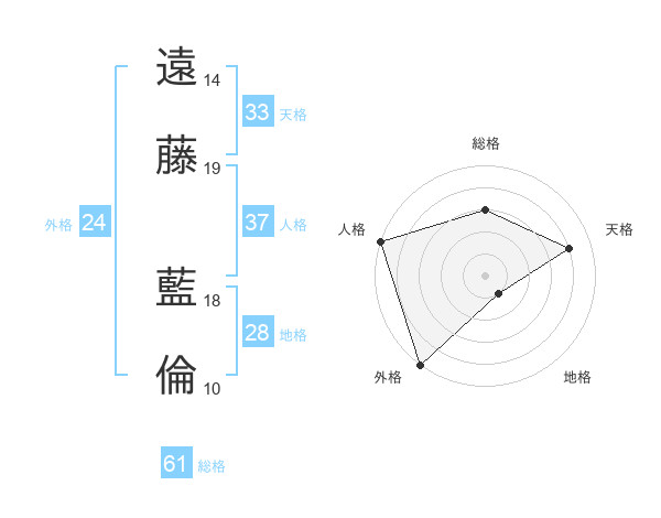 遠藤 藍倫さんを姓名の画数から五運を鑑定