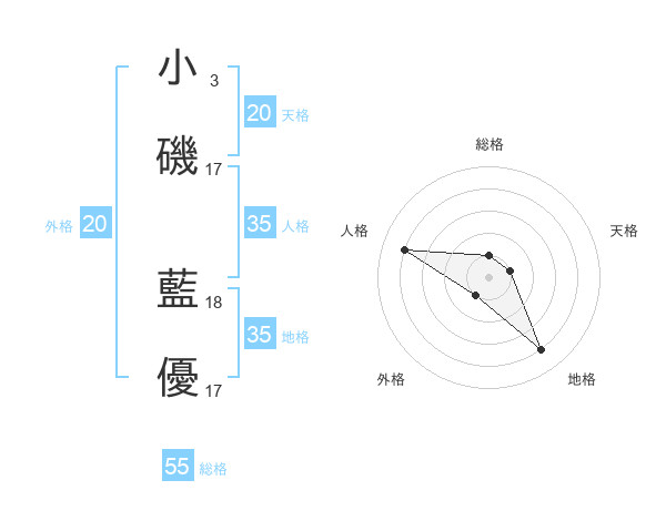 小磯 藍優さんを姓名の画数から五運を鑑定