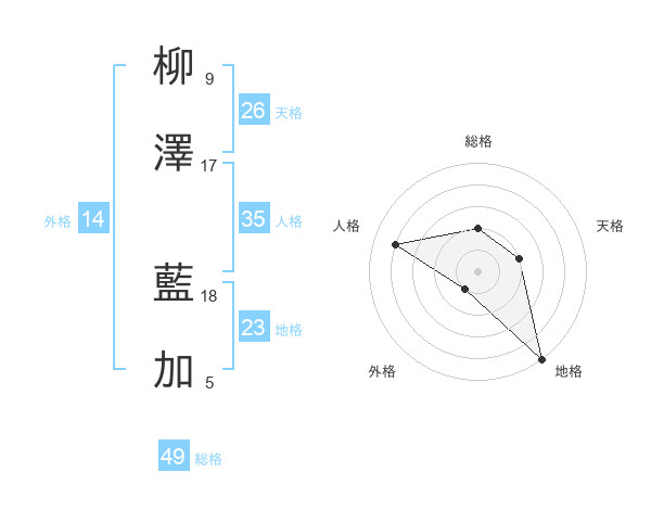 柳澤 藍加さんの天格は26画の2点!
