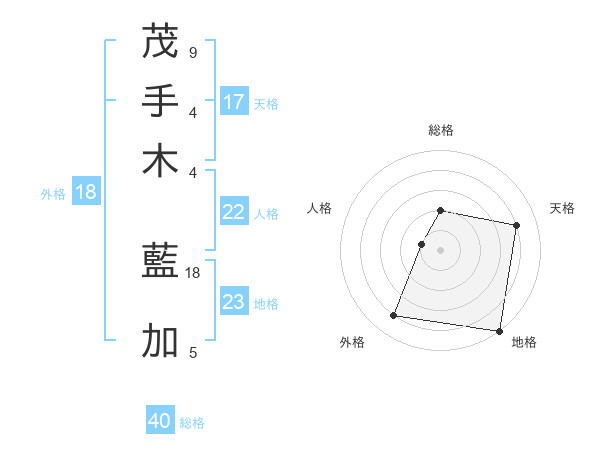 茂手木 藍加さんの総格は40画の2点!