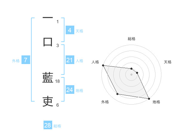 一口 藍吏さんを姓名の画数から五運を鑑定