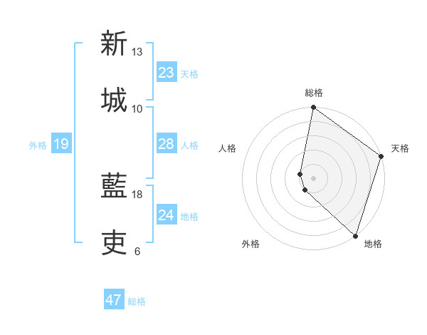 新城 藍吏さんの天格は23画の5点!