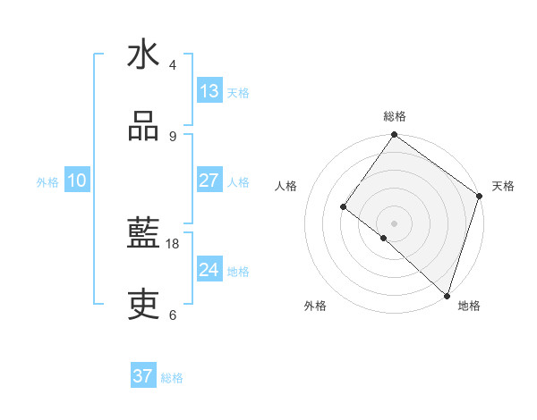 水品 藍吏さんの総格は37画の5点!