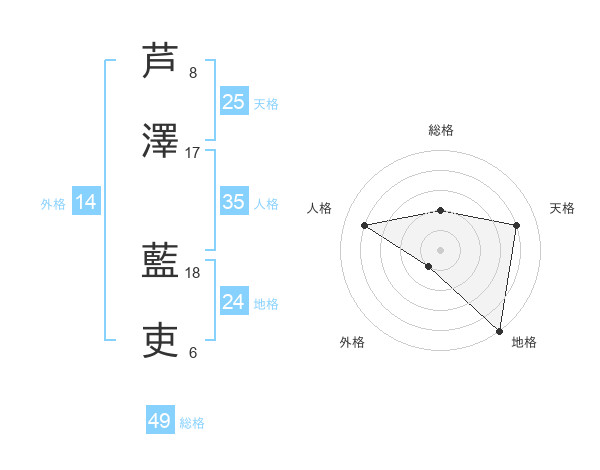 芦澤 藍吏さんの天格は25画の4点!