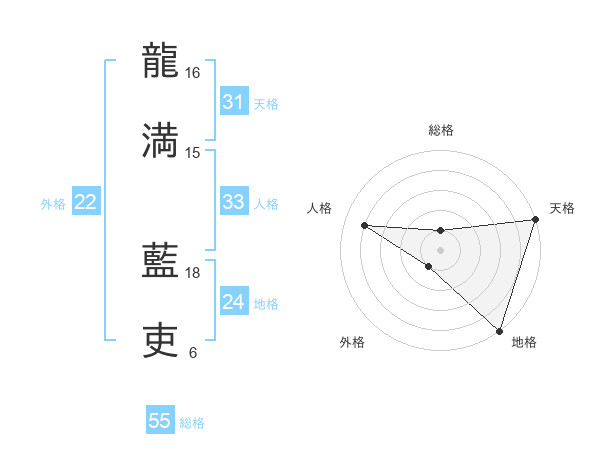 龍満 藍吏さんの天格は31画の5点!