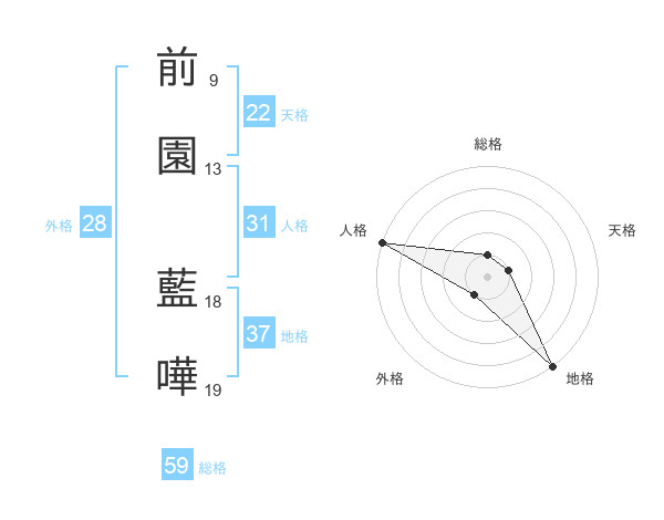 前園 藍嘩さんを姓名の画数から五運を鑑定