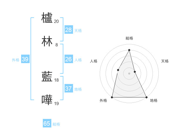 櫨林 藍嘩さんを姓名の画数から五運を鑑定