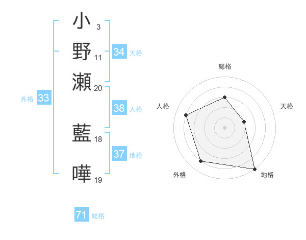 小野瀬 藍嘩さんを姓名の画数から五運を鑑定