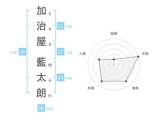 加治屋 藍太朗さんを姓名の画数から五運を鑑定