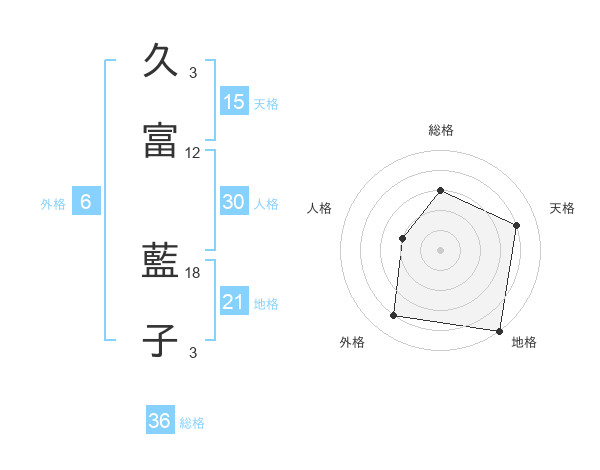 久富 藍子さんの天格は15画の4点!