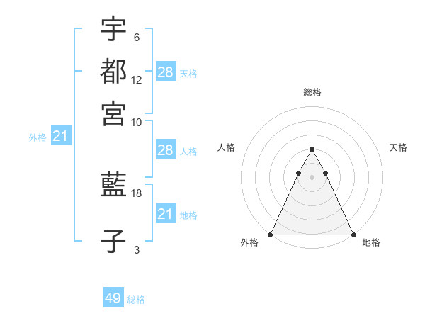 宇都宮 藍子さんの地格は21画の5点!
