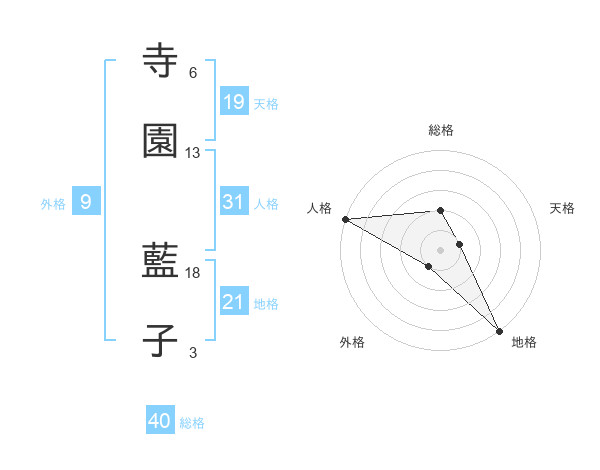 寺園 藍子さんの天格は19画の1点!