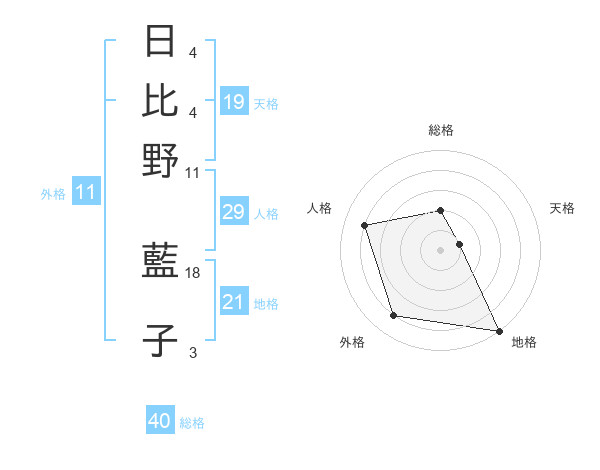 日比野 藍子さんを姓名の画数から五運を鑑定