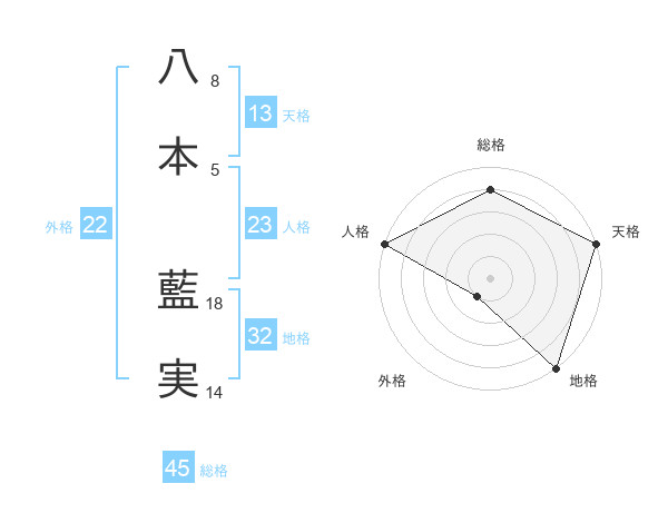 八本 藍実さんの総格は45画の4点!