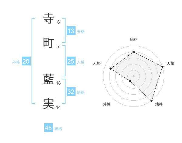 寺町 藍実さんを姓名の画数から五運を鑑定